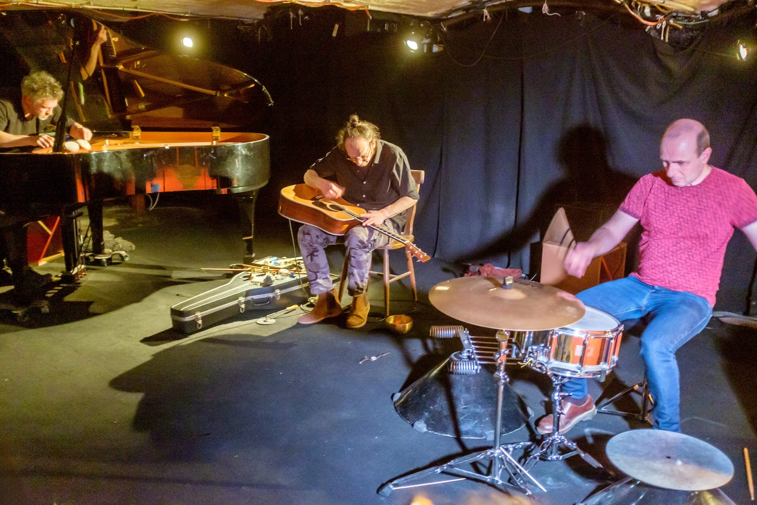 | Philippe Lenglet: acoustic guitar, effects, objects Samuel Bodart: snare drum, bass drum, cymbals, percussions, Baschet sound structures Falter Bramnk: prepared piano, objects |